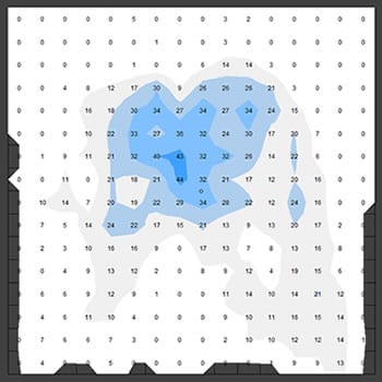 Primacare different seat cushions options have all been extensively tested using a pressure mat which contains 120 different pressure sensors over the seating area of a chair. Pressure Mapping is unique to the individual user, the type of cushion and the relative position of the chair. However the mapping can give proportional performance and a pressure map when comparing different cushions with the same user.